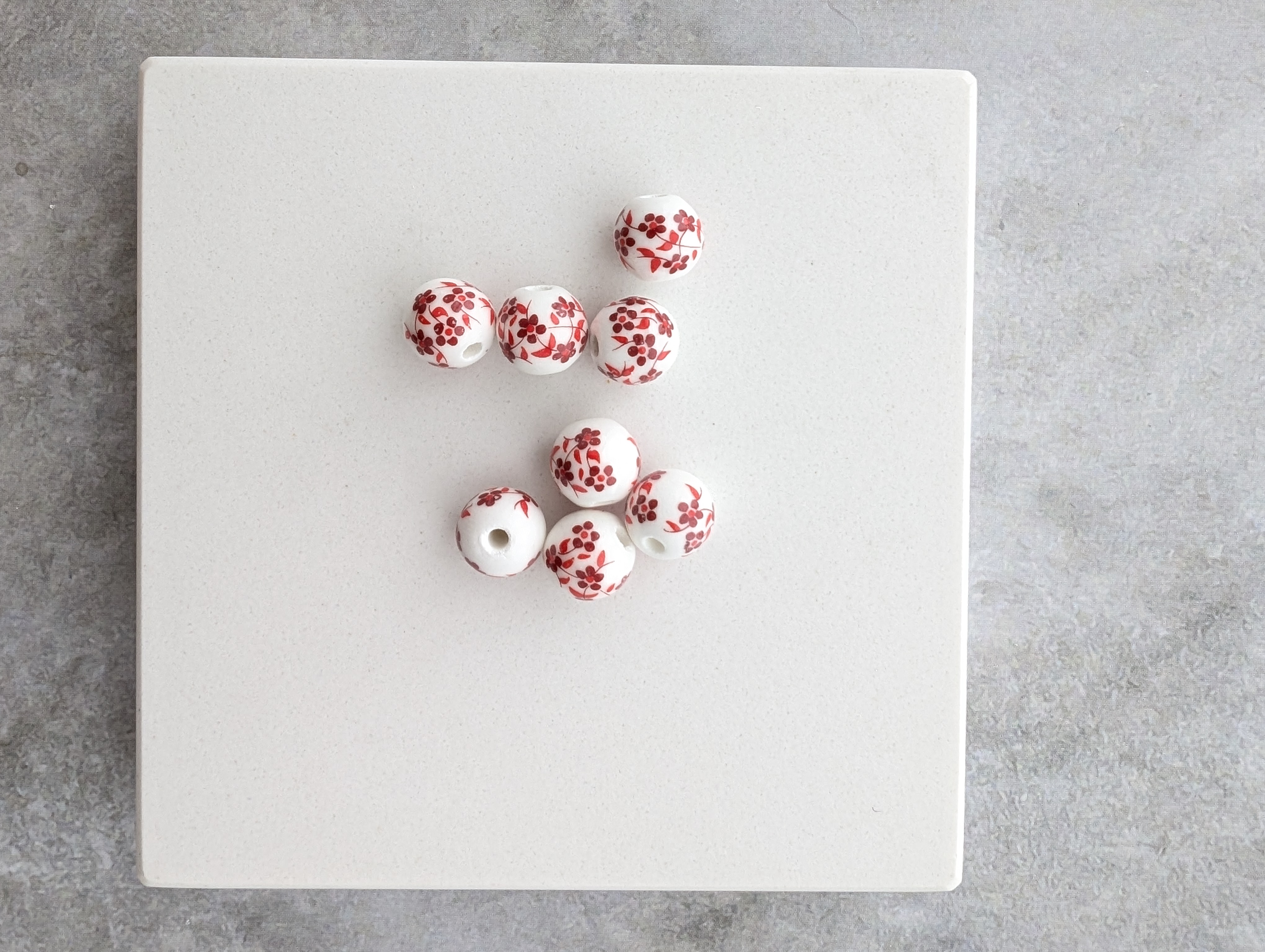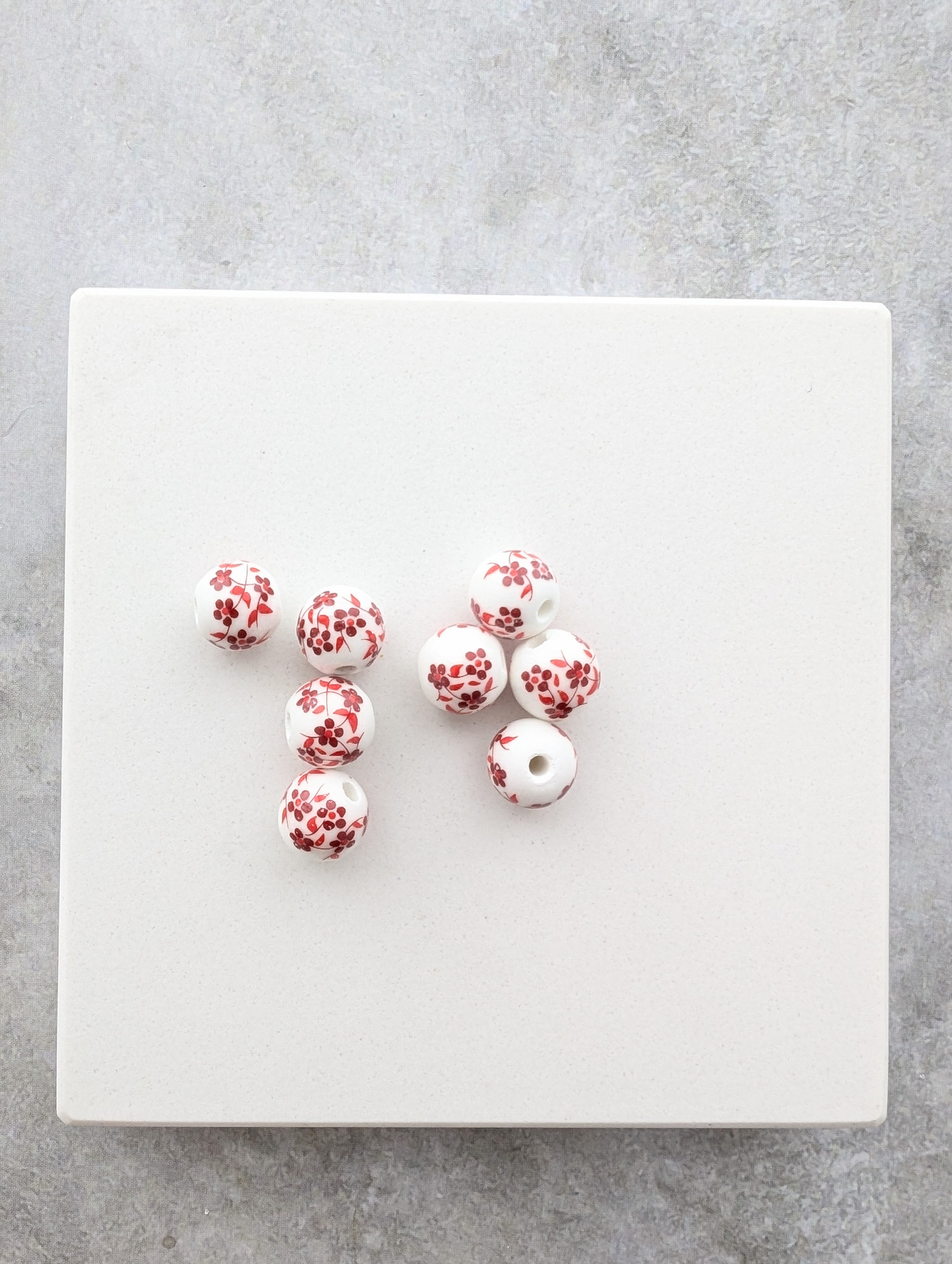 Бусины керамические гжель с красным узором 8мм, 10шт