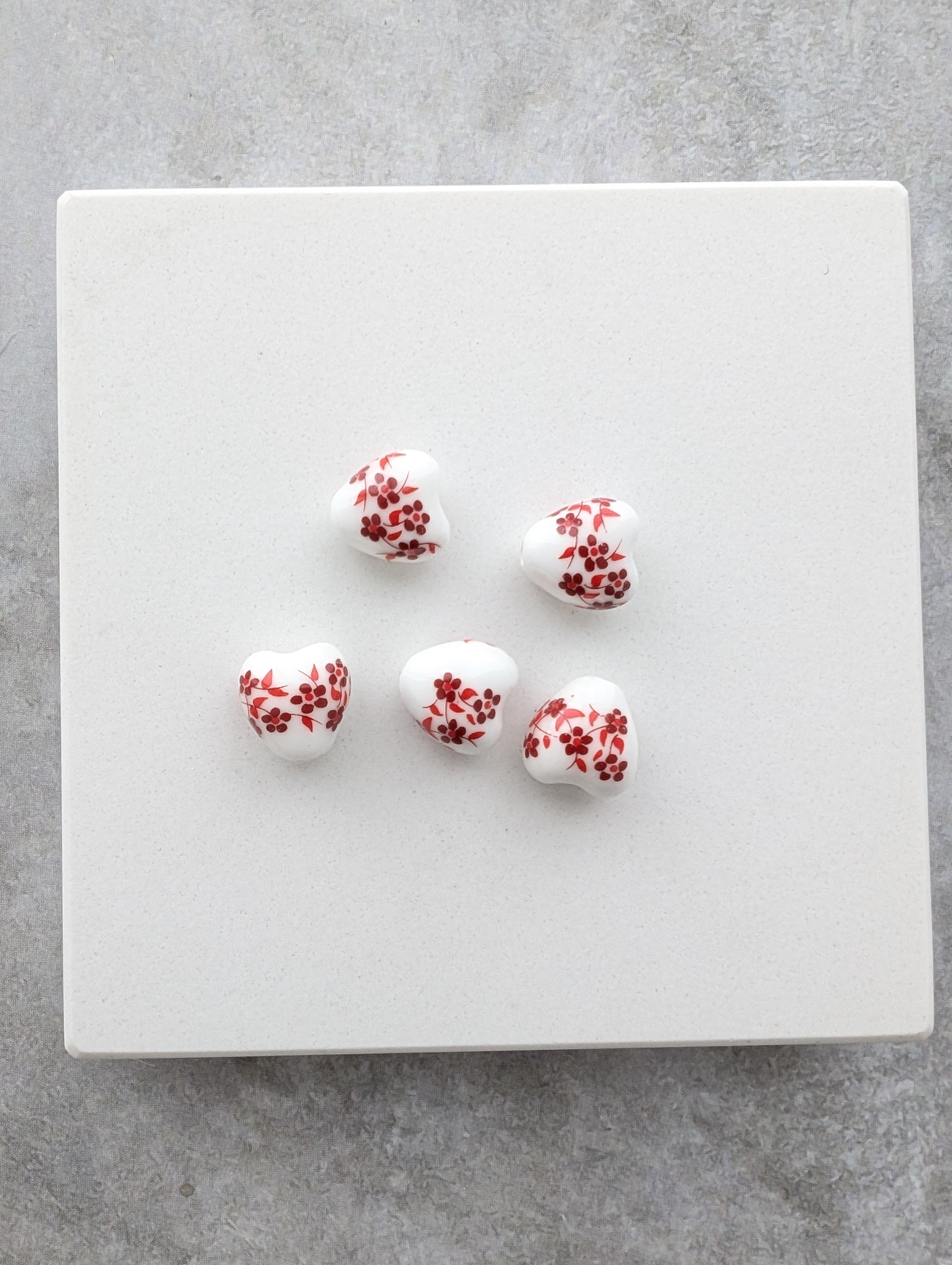 Бусины керамические сердце 12мм гжель с красным узором, 5шт