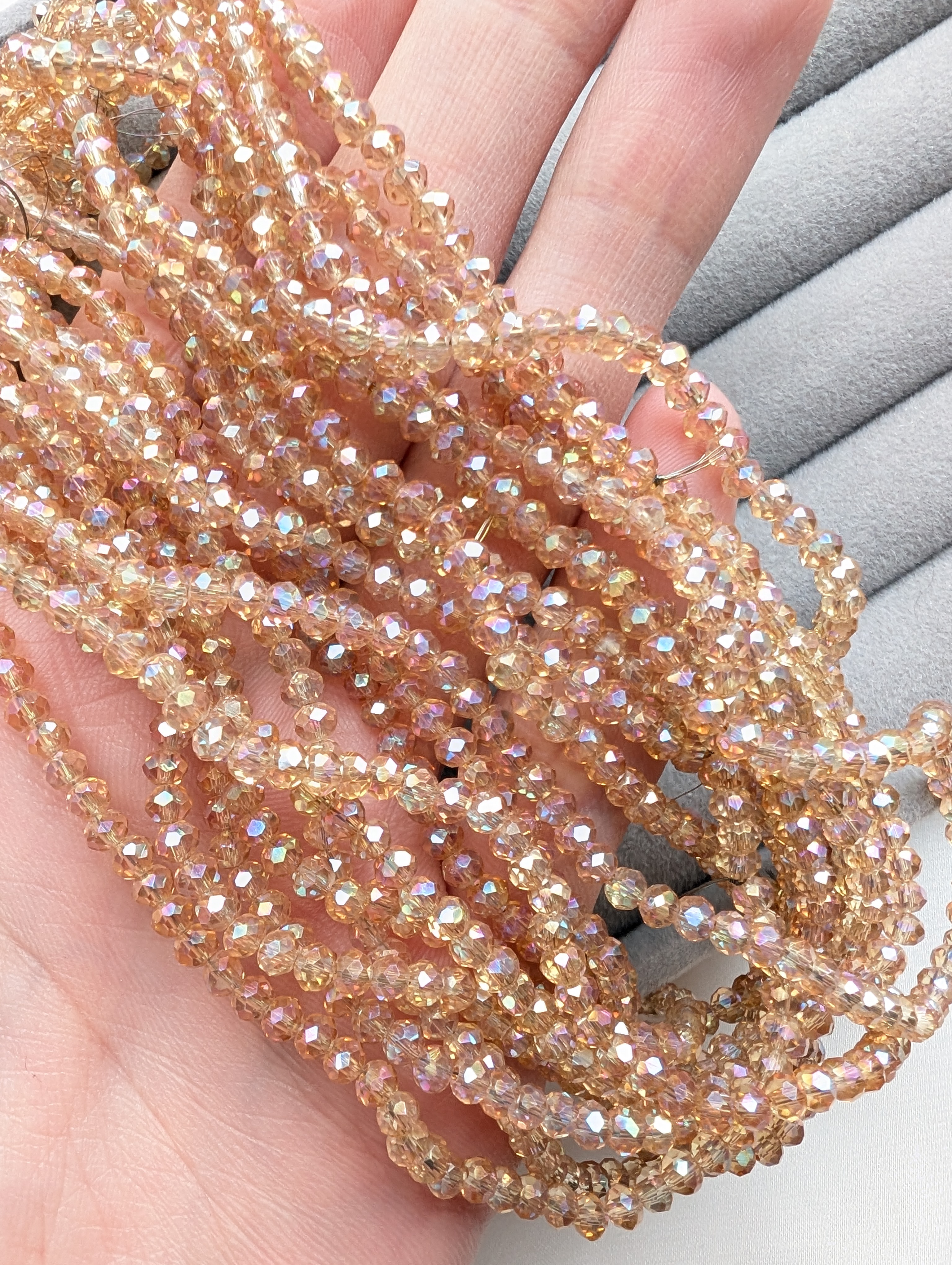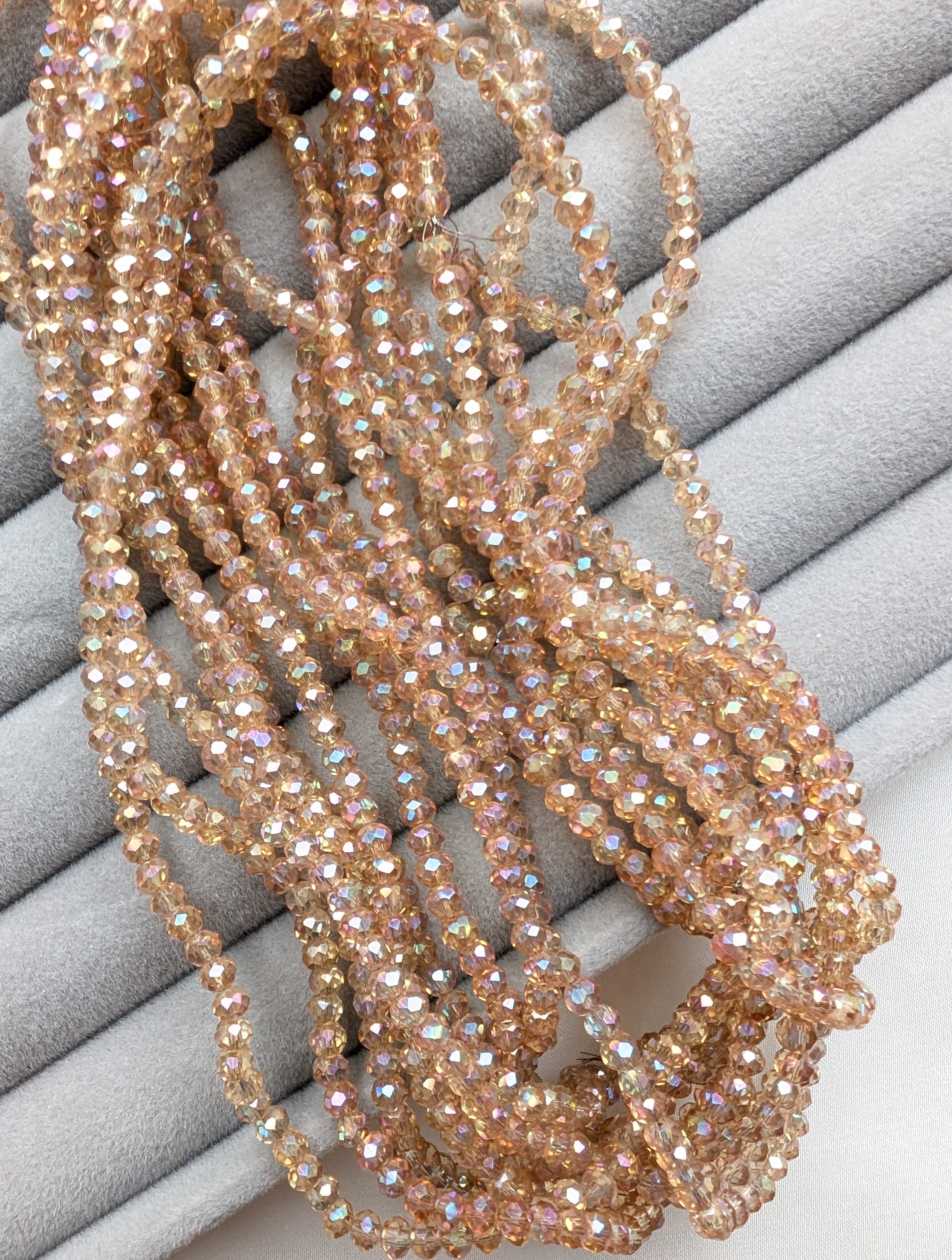 Бусины стеклянные рондель 3мм, шампань с переливом