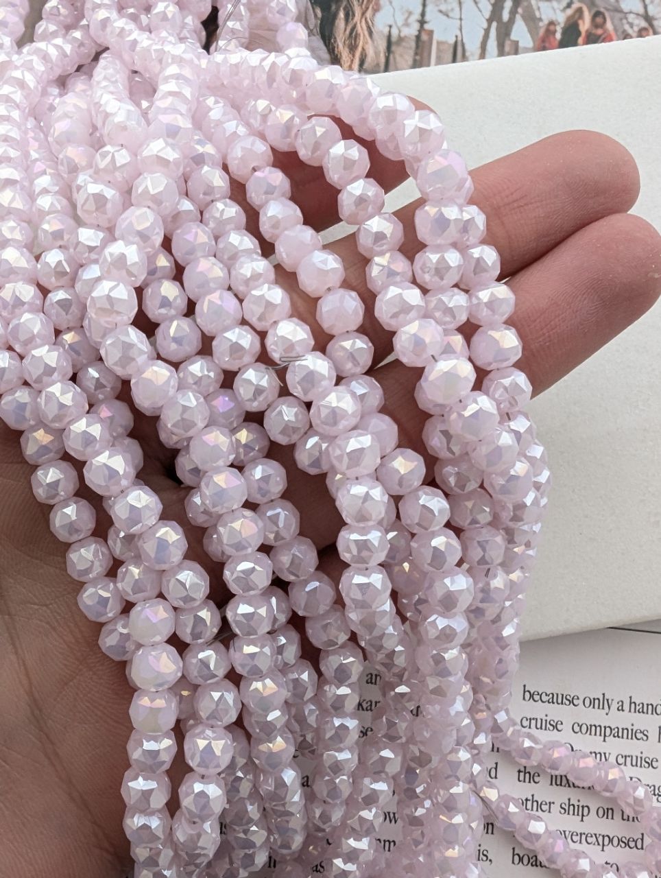 Бусины стеклянные шар в огранке 6мм, розовый с переливом