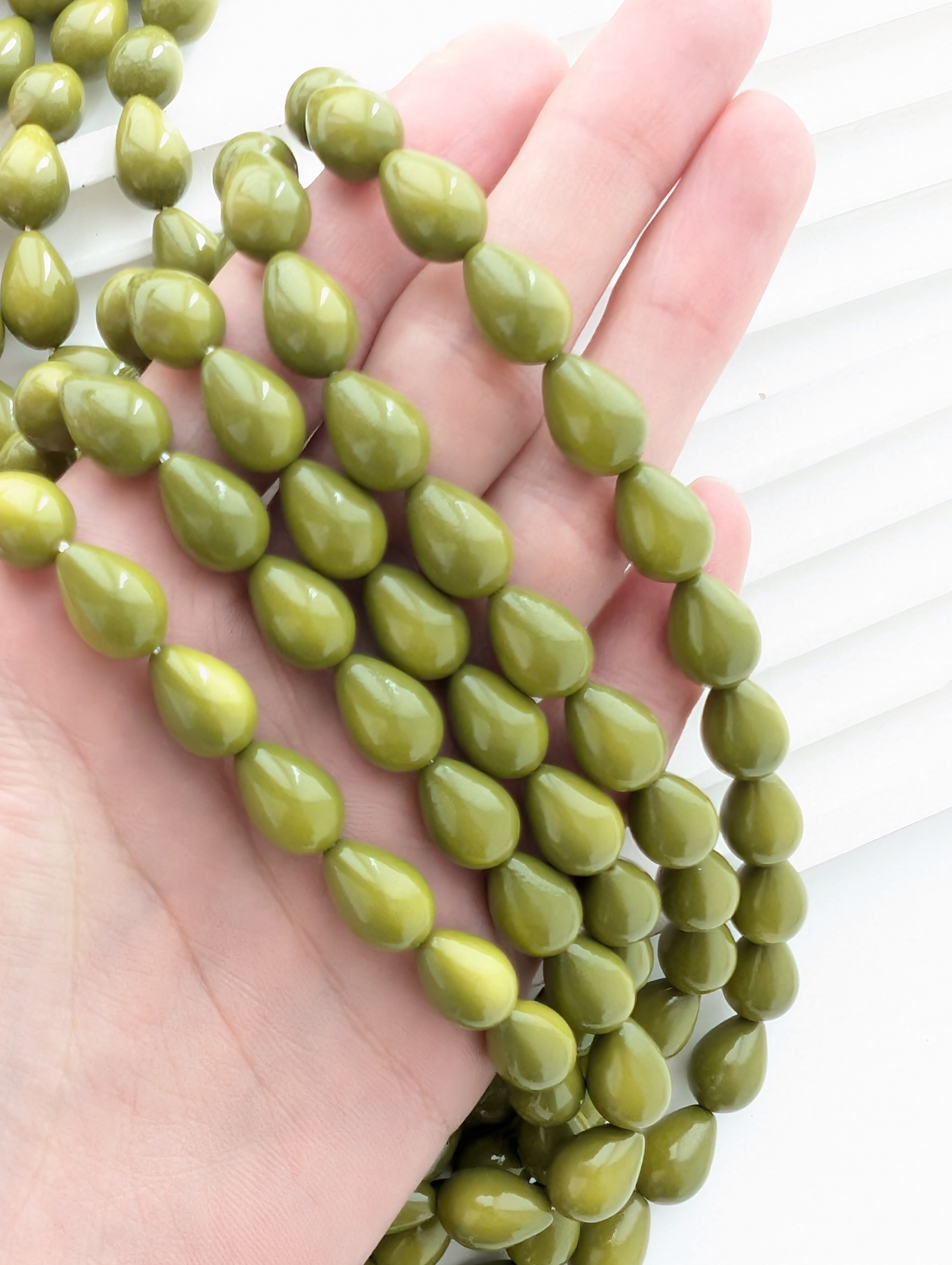 Майорка капля 13*9мм, оливково-зеленая с градиентом