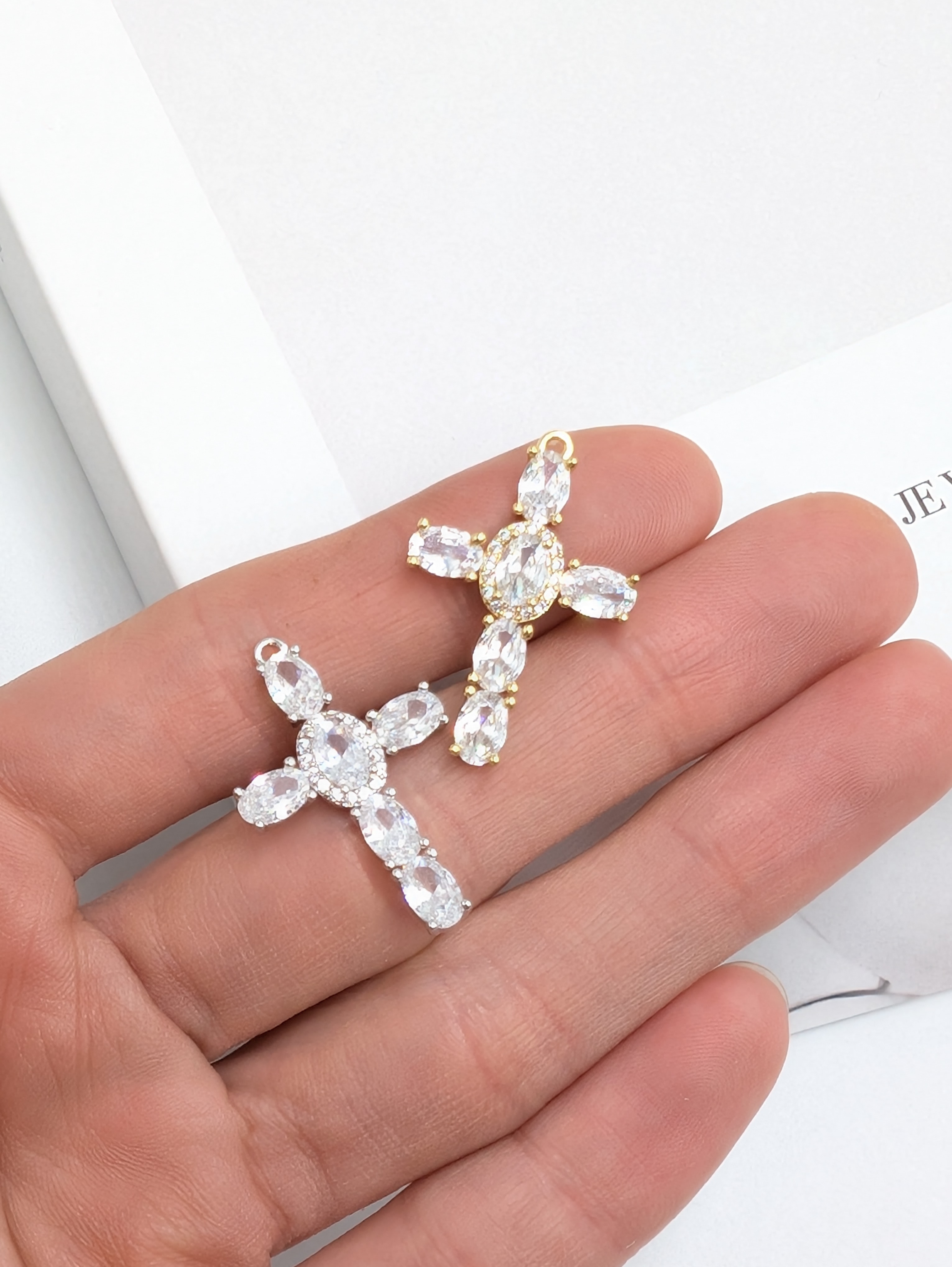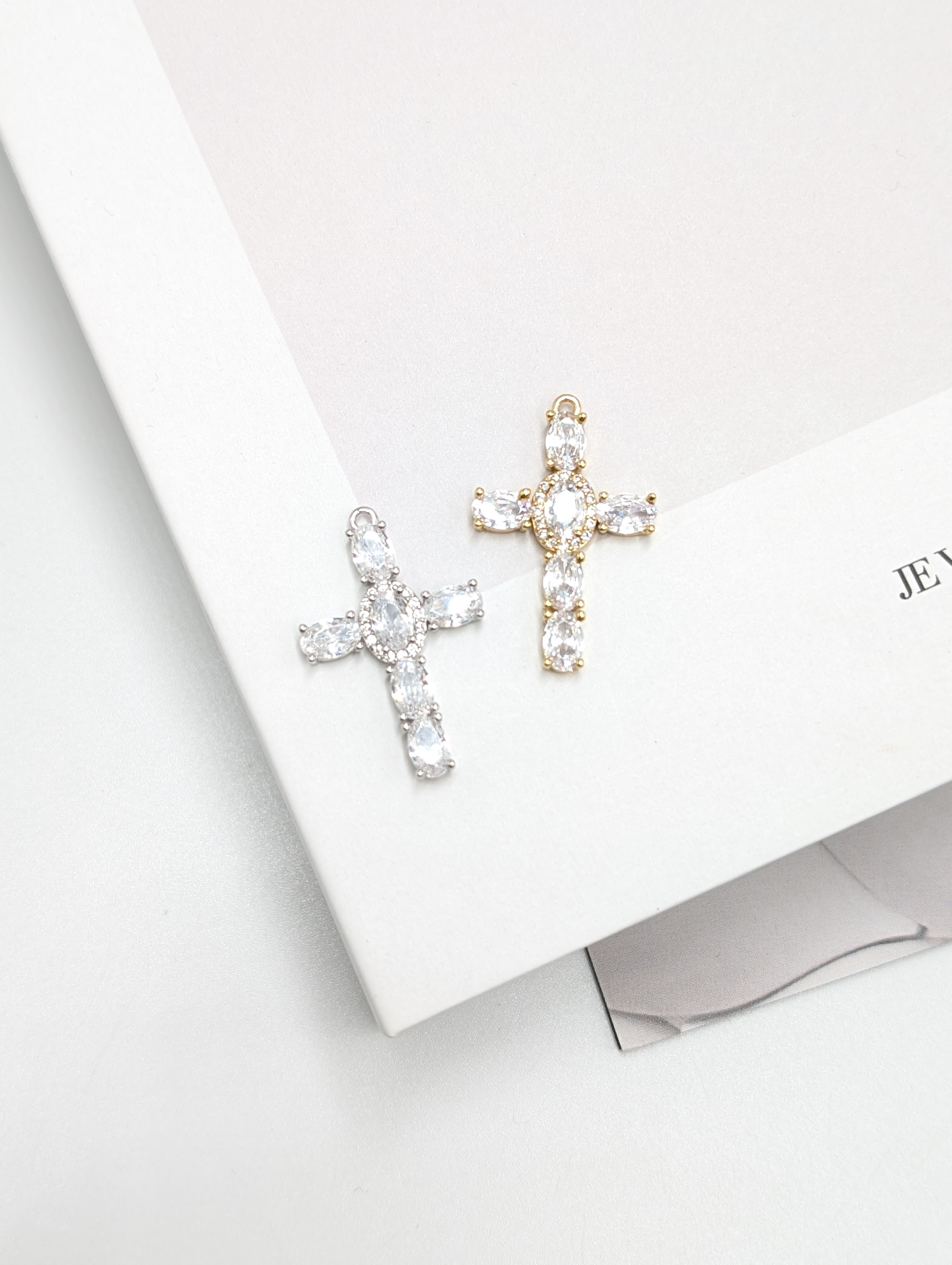 Подвеска крест с фианитами, 26*17мм