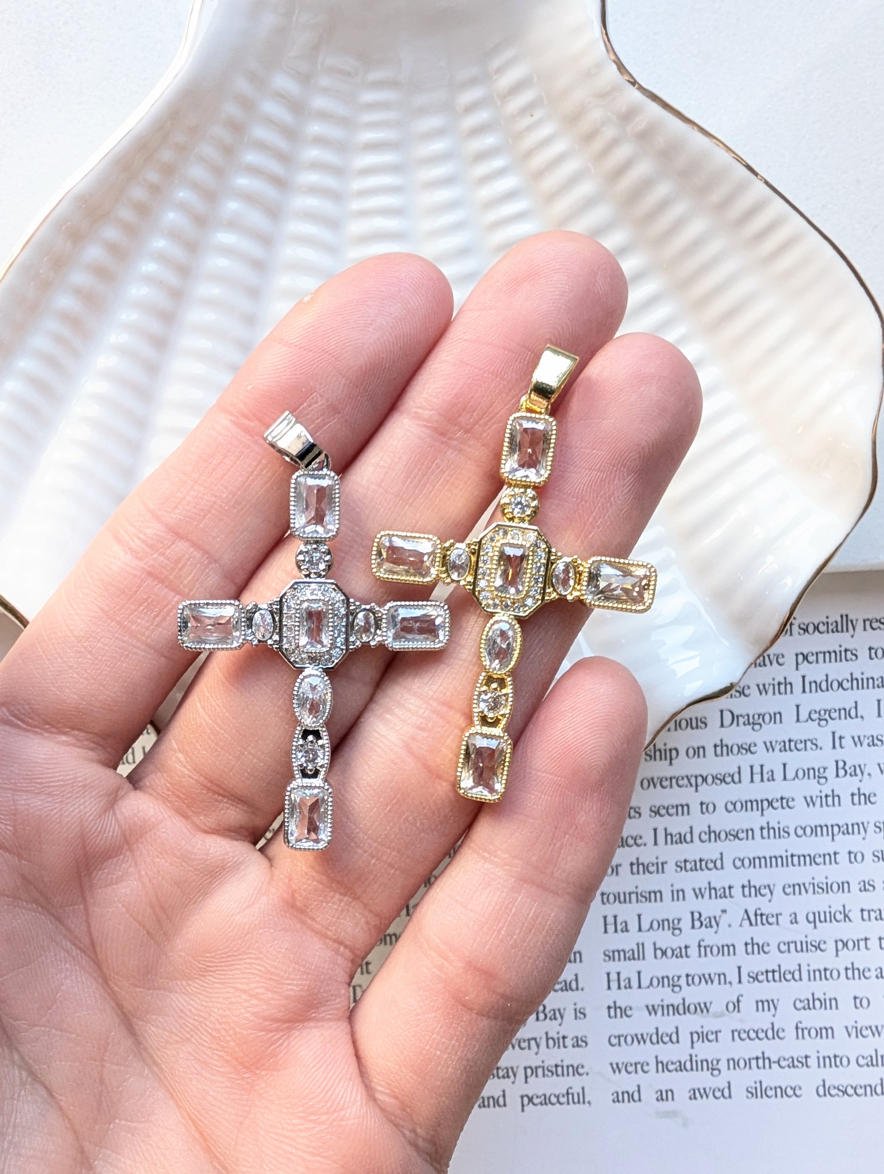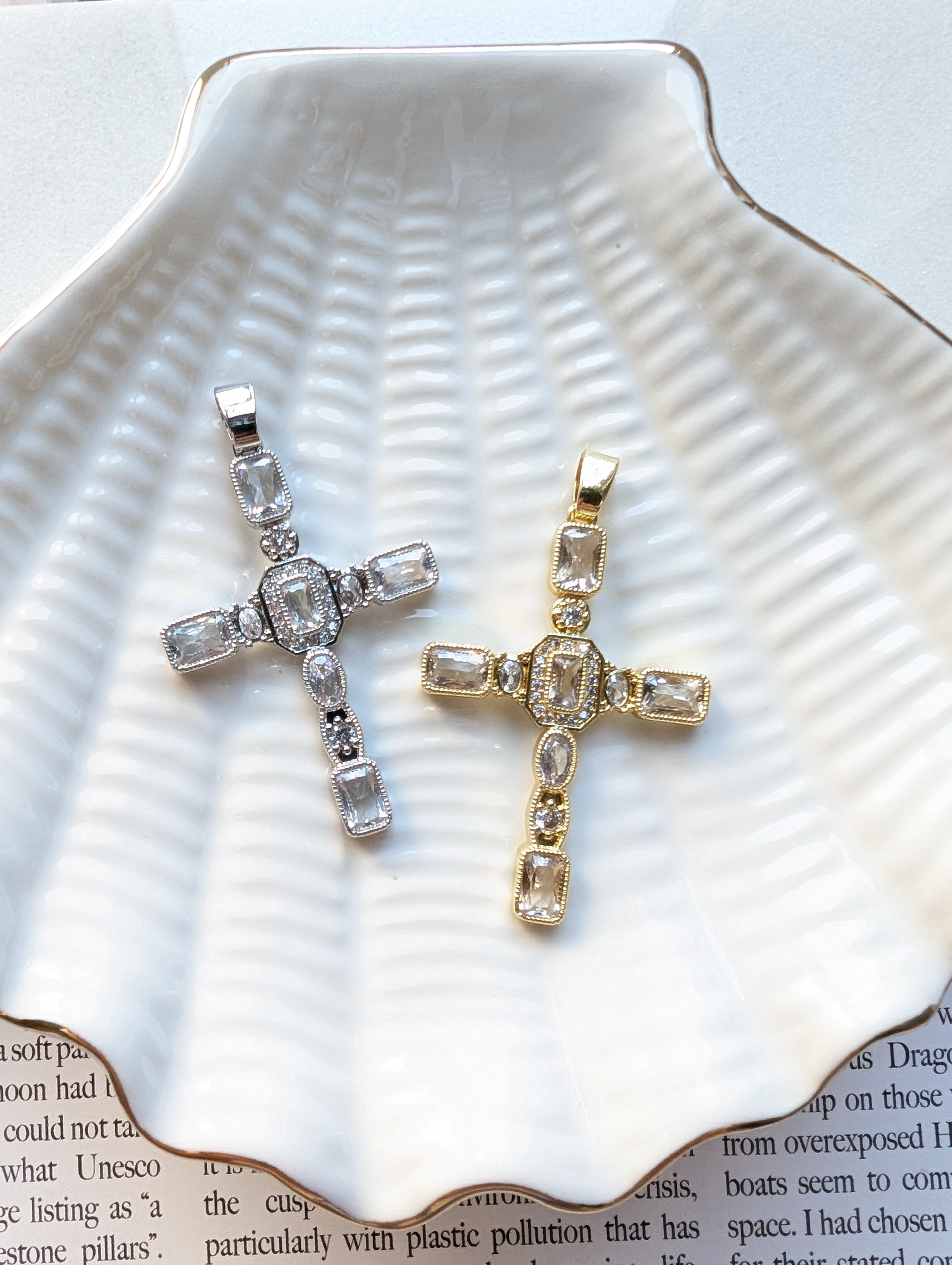Подвеска крест с фианитами, 41*28мм