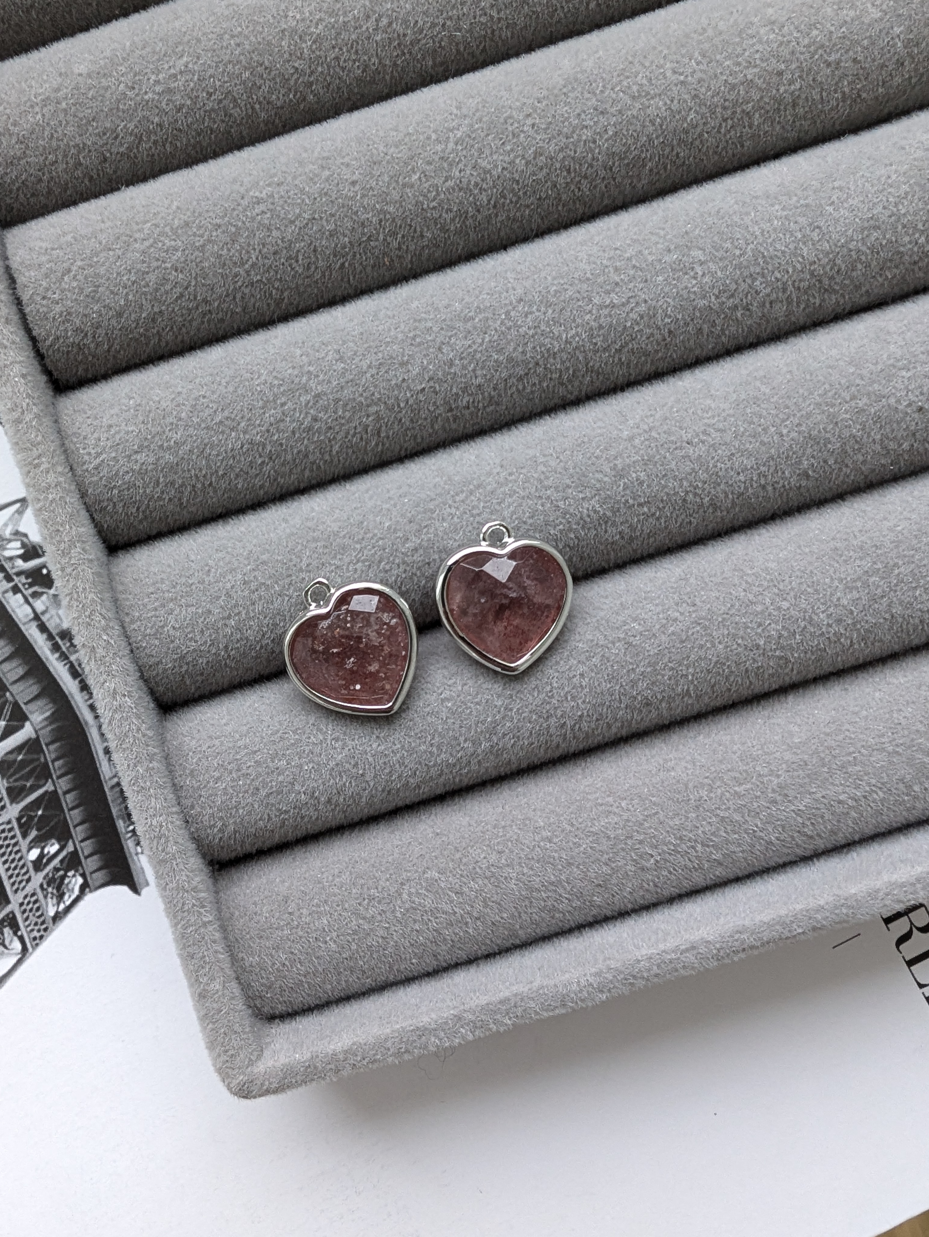 Подвеска сердце 13мм, клубничный кварц