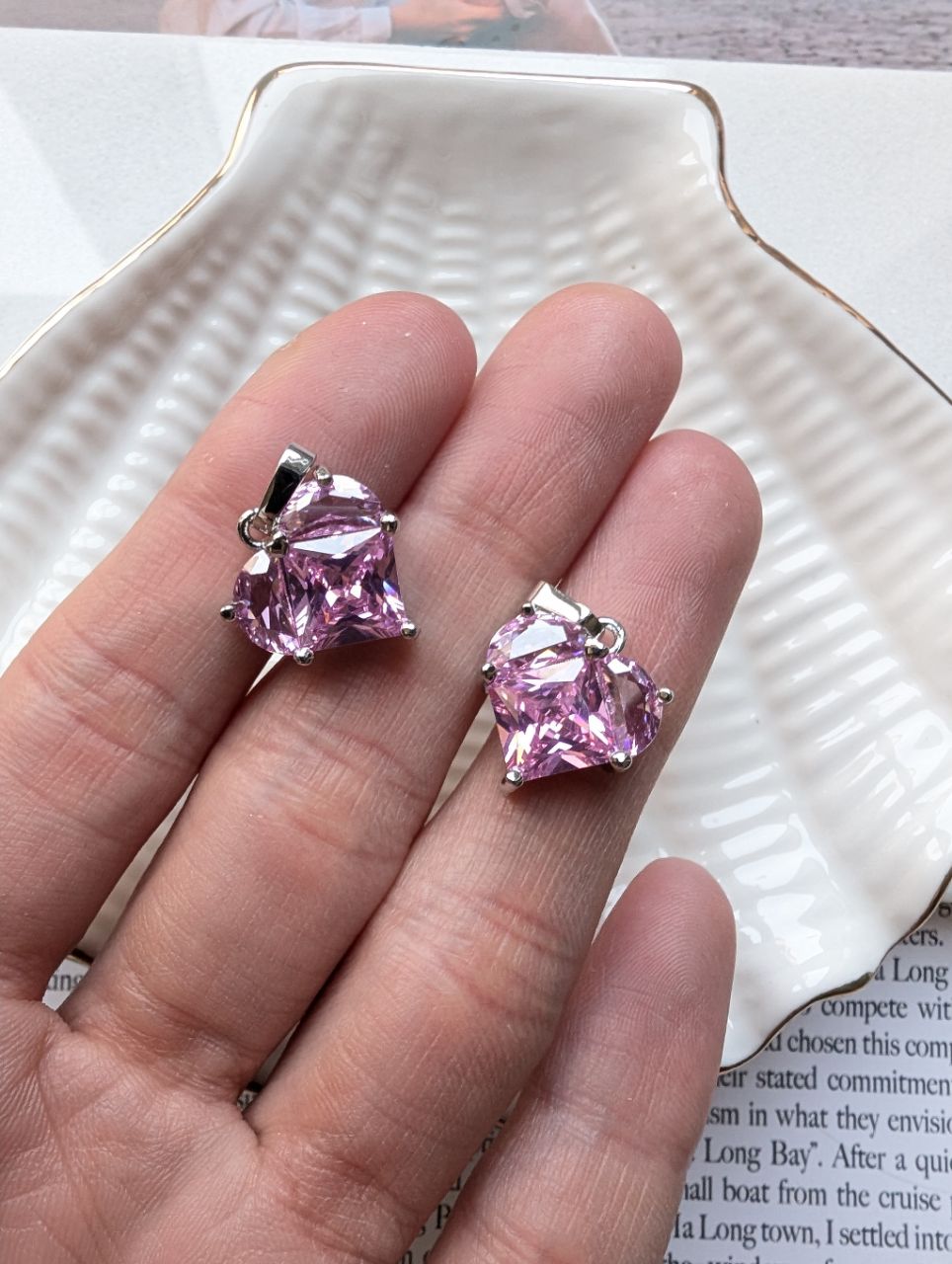 Подвеска сердце с фианитами 14мм
