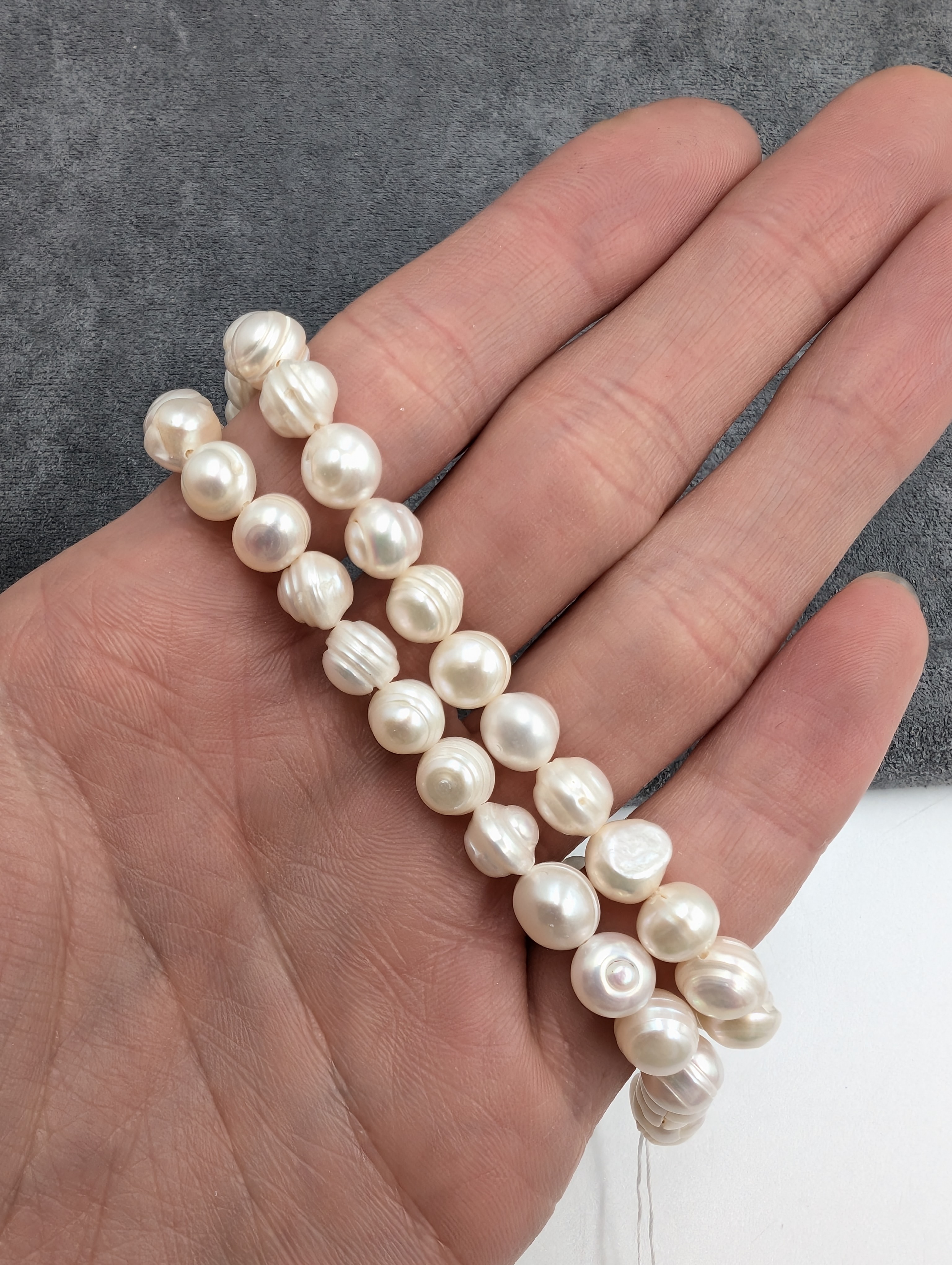 Жемчуг - природный материал, поэтому в одной нити допустимо до 10-15% бусин с несовершенствами.