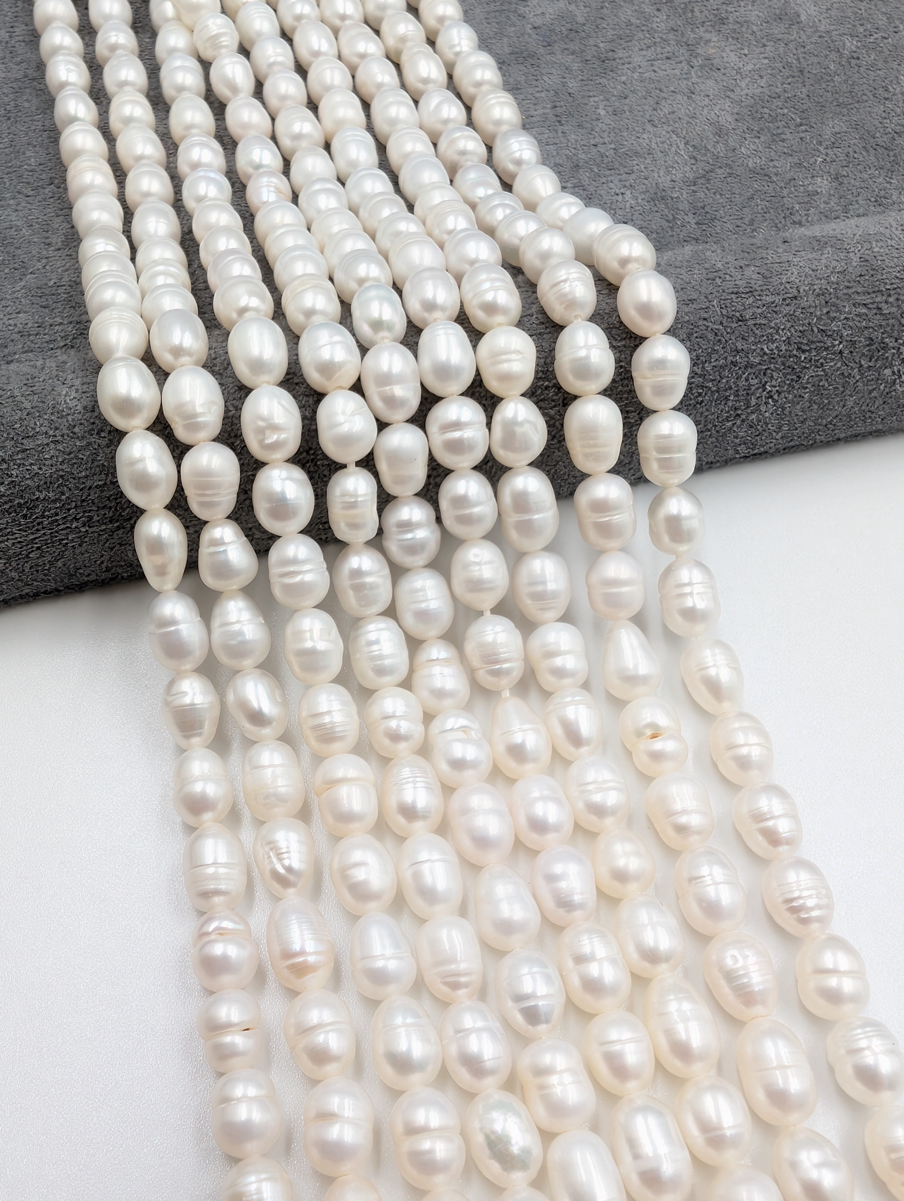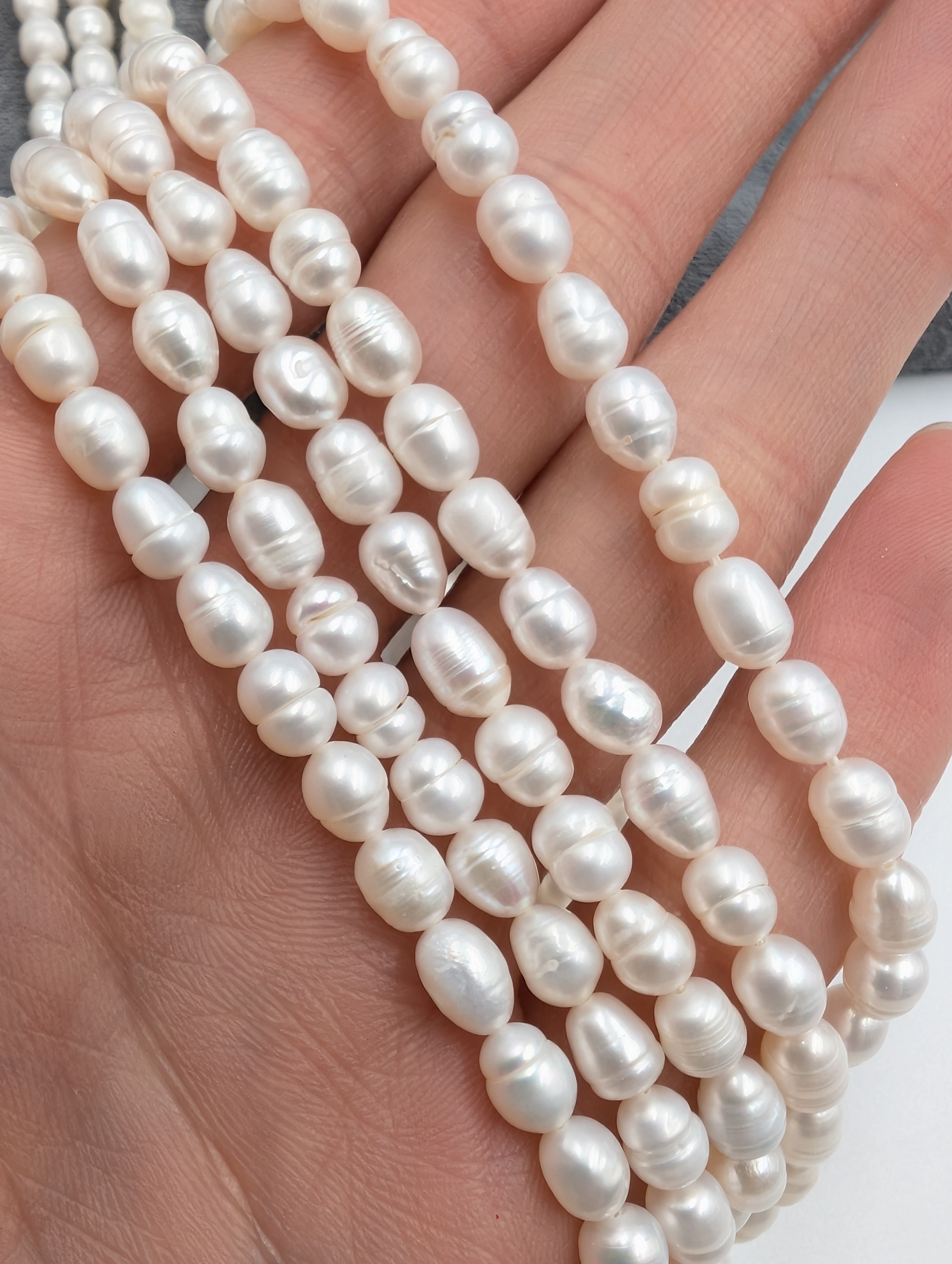 Жемчуг - природный материал, поэтому в одной нити допустимо до 10-15% бусин с несовершенствами.